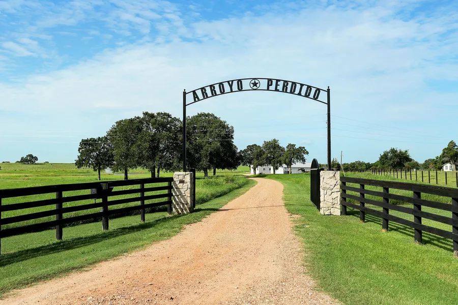 50+ Acre Ranch in Round Top! Enter the horse friendly property and drive up past the beautifully kept pastures, pretty pond, and 2 equipment barns. Continue to the hilltop where the spacious home and two-stall horse barn sit. Take in the captivating views of the entire property whether you are relaxing on the porch or taking an evening ride on your horse. As you enter the custom home, the entryway welcomes you to the grand living space with a stone fireplace and a wall of French Doors that open to the back porch. The dining room with built-in wet bar is ideal for hosting dinner parties. Custom cabinetry, double ovens and a breakfast nook enhance the kitchen. The primary suite's bath feels like a spa retreat with its oversized shower, soaking tub, double vanities, and closets with built-ins. Three additional bedrooms and two baths provide plenty of space for family and friends. One of the bedrooms works great as a study/library. The large three car garage complete with workshop and storage area. The landscaped yard has a patio area and a putting green. The two-stall horse barn is conveniently located close to the home. Two additional barns provide shop space and equipment storage. A second residence located on the property can serve as ranch hand quarters or bonus guest space. Come see this ranch property with a view!