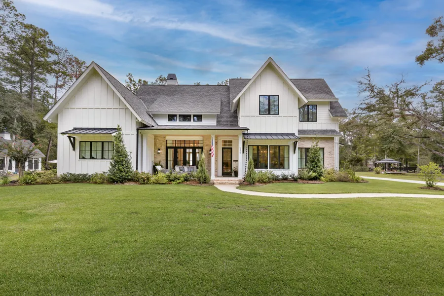 Welcome to La Petite Ferme Blanc, ideally situated on 1.77 acres, featuring a gated entrance, majestic oaks, and lush landscaping. This modern farmhouse, is a true masterpieceblending luxury with comfort in perfect harmony. Every detail has been crafted to captivate, from the striking architecture to the high-end finishes throughout. Step inside and be greeted by an open-concept floor plan flooded with natural light, soaring ceilings, and exposed beams. All of the beams were harvested from the property. Wide-plank oak floors and brushed gold plumbing fixtures add warmth and sophistication, while tongue-and-groove ceilings on the porch exude charm. The list of luxurious amenities is endless, starting with a heated saltwater pool and spa, accompanied by a pool bath and a fully equipped outdoor kitchenideal for both relaxation and entertaining. Guests will love the 701 SF guest house, offering a full kitchen, laundry, and a beautifully designed bath. For the creative soul, the 398 SF art studio boasts a vibrant, vintage-inspired atmosphere, while the charming chicken coop adds a delightful touch to the property. The main house features a primary suite, with a luxurious bath and a serene view from all windows. Laundry rooms on both floors for added convenience. 4 additional bedrooms upstairs, one with a stunning wood accent wall, and 2 full bathrooms provides extra space for living or work. Additional highlights include a 3 car garage with a coated floor, a whole-house generator, irrigation system with well, stone fireplaces, antique doors, custom window treatments, and a Sonos sound system. The outdoor space is equally captivating, with an enchanting gazebo and sun decking overlooking a stocked pond, creating a serene retreat. The main home and guest house offer a combined living square footage of 4051, with ample potential for expansion. Situated in great school districts with NO HOA and Flood Zone C, this property is for both living and entertaining.