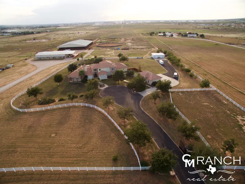 An Equestrians dream come true, the 5T is one of the finest horse farms in the West Texas Region. The 5T is a horse training facility that is a turnkey operation that is set up and ready to go. The incredible 5T facilities, arenas, barns, pens, shop, & luxurious main house are situated to the front of the property on about 22 acres leaving the back 50 acres for a pasture. The horse barn is equipped with 8 stables, 3 upscale apartments, and one vet room, wash rack, and palpating chute. At both ends of the extravagant horse barn are 14-foot overhead doors, which are perfect for letting a breeze roll through on your warmer spring & summer days. The stalls are 15 x 12 in size complete with a 30 x 15 run off each stall. The 5Ts vet room comes with an office, kitchen, full bath with a walk-in shower, as well as a washer & dryer. The 3 amazing apartments are one bedroom, one full bath, kitchen, dining, & living area complete with concrete that accents the gorgeous granite. In addition to the remarkable horse barn, there is a six-horse Equicizer Walker with timing controls. This horse barn is truly one of its own kind & is something you do not run across every day.