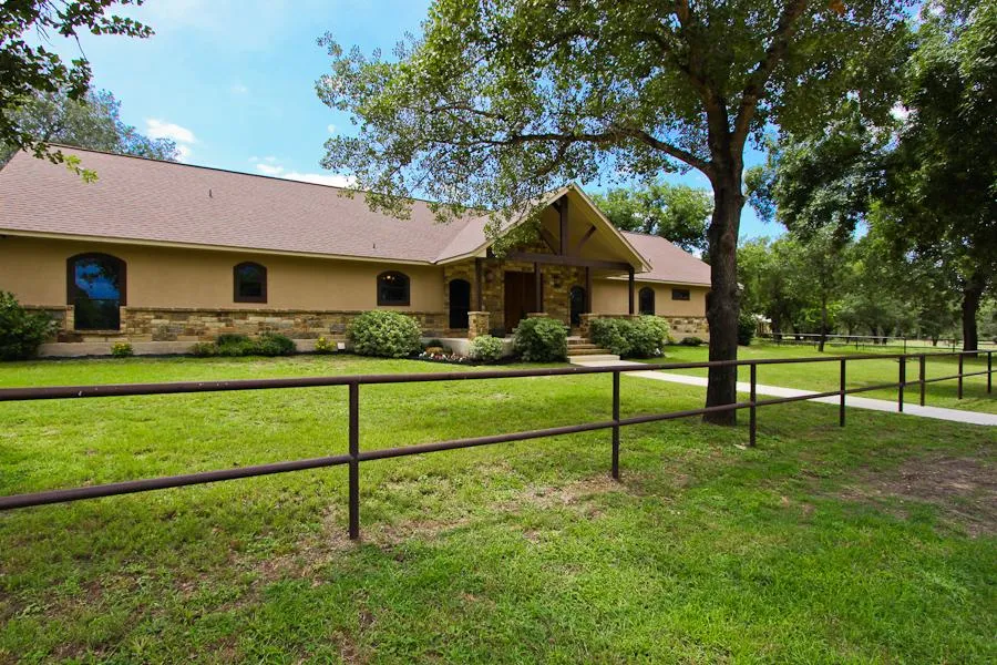 The winding drive welcomes you into this 6 acre tree covered estate. The ranch style home has beautiful exposed beams, cathedral ceilings and an open floor plan that is great for entertaining. The large kitchen has one of a kind granite counters, pecan cabinets, and stainless appliances. This spacious master suite has tons of natural light, an enormous walk-in shower, and a soaker tub. Outside the home is a pipe fenced yard, 24x64 metal barn w/workshop and large dog kennel.