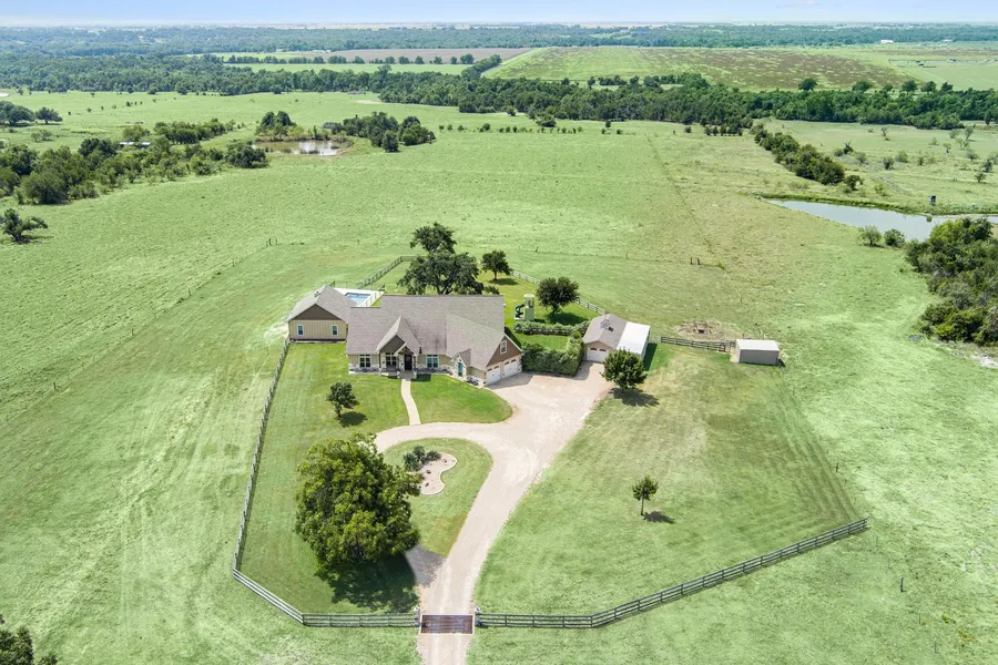 Holland ISD. Over 6 beautiful acres with inground pool and pool house. This home is custom built with outstanding amenities. The circle drive invites you to enter at the oversized iron front door. Upon entry, you will see the custom office with solid wood built ins. The formal dining has a tall wooden beamed ceiling and rock columns. Next enter the living room with amazing tall, vaulted wood beam ceiling. The fireplace is floor to ceiling rock and is flanked by a solid wood entertainment center and shelving. There is another set of bookcases that also serves as Christmas closet or safe room when opened. The kitchen has a large breakfast area, center island with granite counters, cabinetry is Knotty Alder, propane cooktop, pot filler and double ovens. The kitchen also includes a wine refrigerator, wine glass storage and custom display cabinetry. Nice walk in pantry, this kitchen is a Dream. Home has a powder bath tucked away and convenient to the living areas and garage. Amazing primary bedroom has patio access and an electric fireplace. The primary bath has dual vanities with makeup space. The Shower is just behind the soaking tub and the closet has amazing storage and built ins. 2 of the 3 secondary bedrooms have a Jack and Jill bath. Outside you will find a 3 car garage/workshop. The custom covered patio has a propane BBQ grill and a flat top grill. There is also a custom sand lot and putting green, oh my! The swimming pool is fully fenced with a covered patio area and wood burning fireplace. the pool house has a full bathroom and custom built in cabinetry. This property and home are in a great location with plenty of space for Farm and Family. Fabulous property and Home just waiting for your Family!