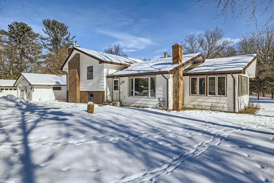 This 4-level split home on 6 acres offers incredible potential and plenty of space, with an opportunity to add your updates and personal touches. It features three bedrooms on the upper level, a cozy family room with a gas fireplace on the lower level, and a dining area that flows into a bright 4-season porch leading to the patio. The expansive property includes a 4-car garage and two storage sheds, providing ample space for vehicles, tools, and hobbies. Enjoy the peaceful surroundings, complete with a fish pond. Don t miss this rare opportunity to create your dream retreat in a serene setting!