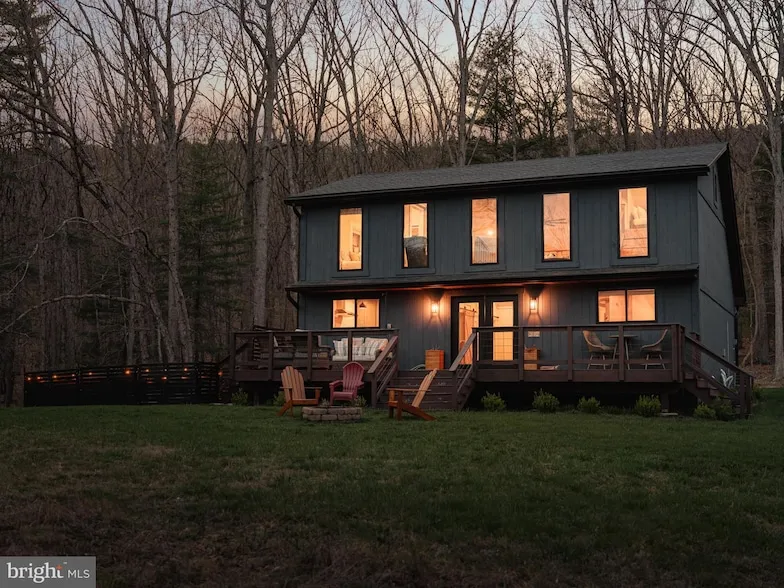 Your new mountain retreat awaits on 6 wooded acres with enchanting mountain views. This stunning home features vaulted ceilings and rich wood and stone details throughout, anchored by a beautiful fireplace. The updated kitchen shines with stainless steel appliances, exquisite quartz countertops, and a stylish tile backsplash. The first floor offers a spacious bedroom with a custom accent wall and a full bathroom showcasing gorgeous tile and window-pane glass shower doors. Upstairs, the loft provides additional living space, a cozy extra sleeping nook, and a serene primary suite with vaulted ceilings and a fully renovated ensuite bath. Step outside to enjoy two expansive decks, perfect for taking in the views, along with a fenced-in area and hot tub, creating an ideal setting for relaxation and entertaining in your private mountain oasis.