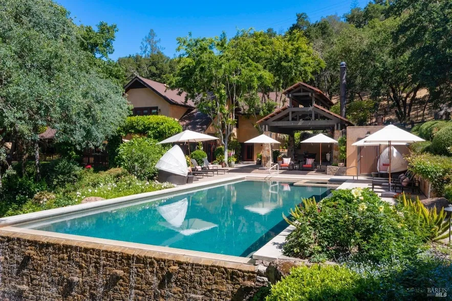 Welcome to Daisy Hill, a stunning retreat nestled in the serene beauty of St. Helena 2 miles from downtown and one mile from Meadowood Resort that sleeps up to 16 people. The main house with space for 12 and the two casitas for another 4! With its exquisite craftsmanship, breathtaking landscapes designed by Johnathan Plant, and luxurious amenities, it offers an unparalleled experience for those seeking a tranquil and private haven just minutes from shopping and dining. Sited on a bucolic country lane and originally custom-built in 2001, the two-story Craftsman-style home of stucco and wood siding showcases its timeless elegance. Designed for an elevated style of family living and entertaining, Daisy Hill includes the primary residence with 4 bedrooms, 4.5 baths, an outdoor dining pavilion and kitchen, a parlor/gym with a full bath, two guest casitas ensuite with private entrances, a pool with waterfall edge, bocce ball court, lighting and sound throughout, walking trails and seemingly endless, mature, lush gardens and tranquil nooks. Heavenly retreat.