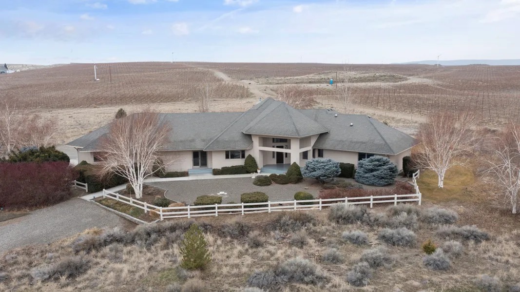 You will find yourself living in your own peaceful paradise on 6 secluded acres bordered by vineyards. Follow the winding drive up through the natural sage to the captivating grand stucco entrance. Step into a vast open floor plan with soaring ceilings plus huge windows to let the natural light pour in and take in the welcoming estate. You will also find real hardwood floors and tile accents done to perfection. The kitchen is a chef's delight with counter space and storage in every direction. You can picture the large island as a gathering place for the entire family, building memories to last a lifetime. A few more steps will take you to the enormous living/entertaining room that has fit parties of 50 people comfortably. Move the entertaining outside under a covered patio with views of the two lovely ponds and see the quail dart in and out from under the surrounding landscape. In fact, almost every night and morning, a group of deer can be seen wandering through the estate or coming for a cool drink in the ponds. The main bedroom is fit for the master with its spaciousness, wonderful master bath, and two French doors that swing open to a private patio with views of the soon to be lush green vines and grapes only steps away. Or you can enjoy the sunsets in the evenings and the nighttime sky full of winking stars. Do not miss the sunroom where potting plants and greenery will no doubt become a passion. Wander out to the spacious garage that also harbors a workshop for the craftsman in the family. Did we mention there is also a separate shop on the property, just perfect for those extra toys ,tools, or restoration projects? The extra acres would be perfect for a horse riding or boarding, a pool to soak up the sunshine, playgrounds for the little ones, or whatever you can imagine. This is the type of property that is rarely found, so be quick to call your realtor today to view!
