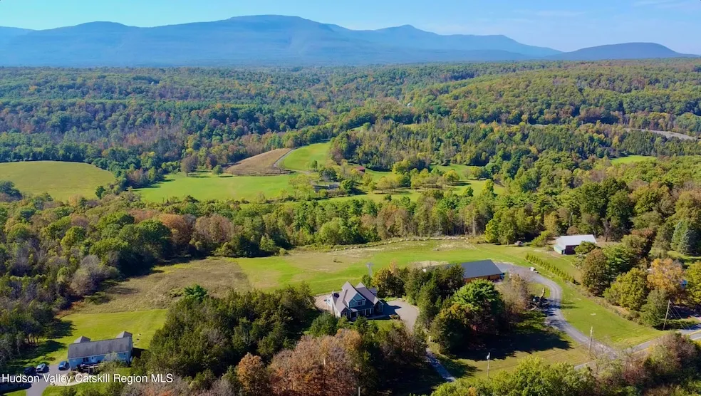 Words cannot express this amazing view of the Catskill Mountains. These pictures will not do it justice either. When standing by the pool and staring at the curves of the Mountains, you are left in awe of their beauty. To the left side of the range, you can see Rip Van Winkle laying down. With Autumn here, the fall colors are starting to bloom, and each season brings unique and precious landscapes. This home is built for entertaining. The soaring high ceiling of the great room leads right outside to the terrace and opens up into the kitchen and dining room as well. With 4 bedrooms and multiple extra rooms, the entire extended family can gather. The downstairs full finished basement is designed for entertaining by the pool and would make a great mother-in-law unit with proper permitting. The heated saltwater pool allows you to enjoy the fun early and late into the season. The house is seated on 6.1 acres that descend down to the Kaaterskill Creek at the bottom of the hill. Privacy is insured in the deed as neighbors are not allowed to take down trees in between the property borders. You must come and see the view from each and every room to truly appreciate this one-of-a-kind property. Everything you could want and only 5 minutes from the Village of Catskill.