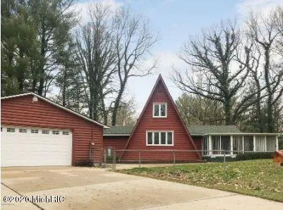 Your perfect cabin in the woods! This A frame home is nestled alongside a quiet creek that sits on 6 rolling, wooded, acres of property. Tall Pines and Hardwoods surround this home as the Kitchen, Dining, and Extensive Decking overlook the beautiful creek full of jumping Trout and Salmon. Home has 352 Sq. Ft. of wrap around, completely glassed 3 season porch, which allow you to enjoy the sounds and scenes of the beautiful wildlife and Michigan Seasons. This home provides main floor laundry, very large garage, 2 outbuildings, a fully fenced in yard for your furry friends, as well as a very large master bedroom. Home has many updates including newer siding and roof on garage, and home, within the last 5 years. Generac generator so you never have to worry about losing power in the country.