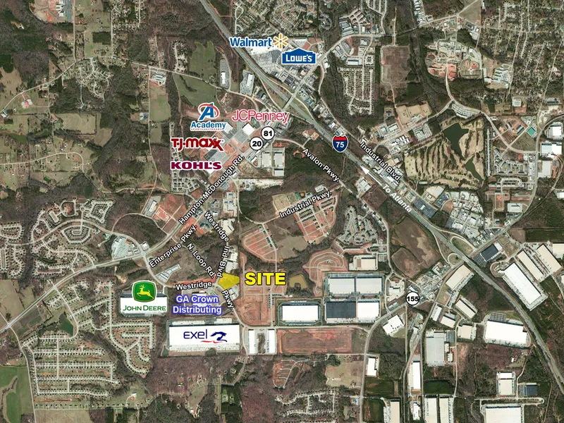 6.14 acres available. Road frontage on Westridge Industrial Boulevard and Westridge Parkway. Flat topography. All utilities available. Excellent business park environment (GA Crown, Home Depot, John Deere, Henry County Chamber of Commerce). Zoned Industrial.