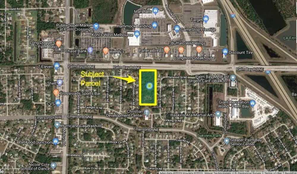 Beautifully wooded acreage in the heart of the Palm Bay Rd. area of Melbourne/Palm Bay with excellent exposure on Palm Bay Rd. Easy access to I-95, just west of Giant Recreation World. Currently zoned residential up to 3 units per acre, City of Palm Bay has expressed interest in rezoning to Neighborhood Commercial due to 30,500 ADDT traffic count frontage with Mobile Exxon, McDonald's and Panda Express directly across the road to the north. Lovely established neighborhoods on both sides of the property and a house of worship on the southern border of the tract.