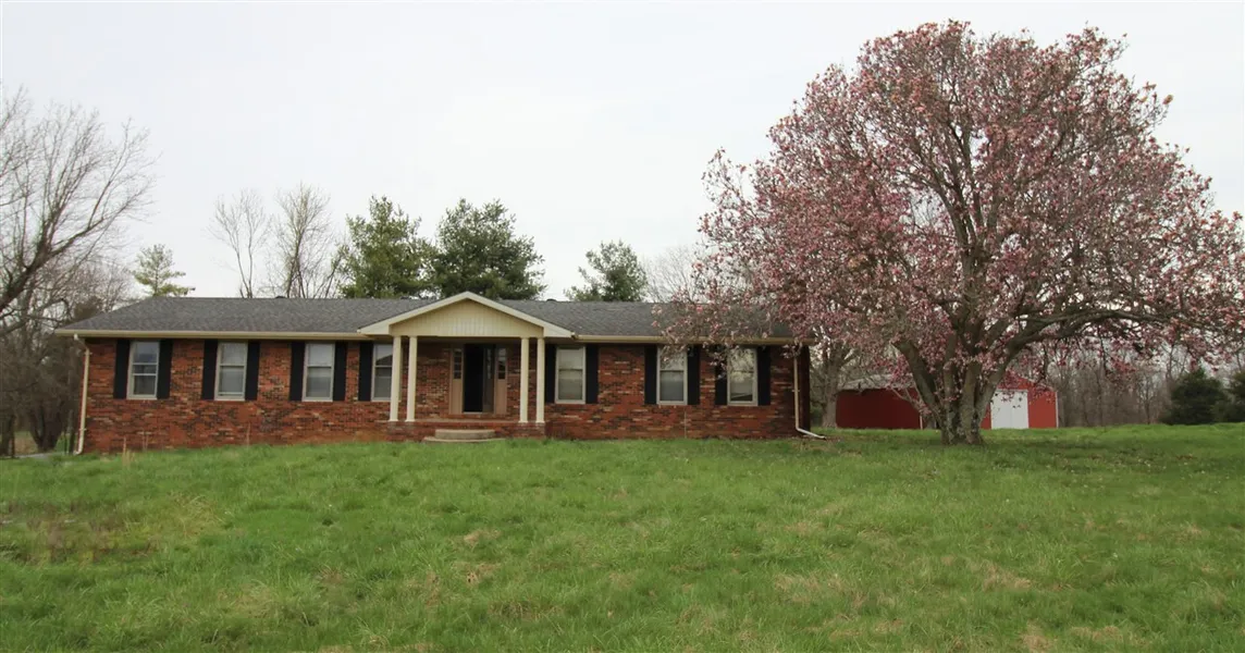 PENDING-SELLERS ACCEPTING BACK UP OFFERS. MINI FARM! Remarkable home for the money. Over 6 acres with metal bldg barn with concrete floor, run in shed and a pond plus home with over 1800 sq ft finished. All brick exterior home with an inviting entrance. Large Foyer, spacious living room, open kitchen, formal dining and cozy family room with fireplace and wood burning insert. 3 bedrooms and 1 full and 1 half bath. Off kitchen there is a 3 season sun room on back overlooking barn and pasture. Partially finished basement has room under family room with a wood burning stove for back up heating. Basement also contains a laundry area with utility area. Storage rooms and a 1 car garage. Home is dated but could be a showplace with a little work.