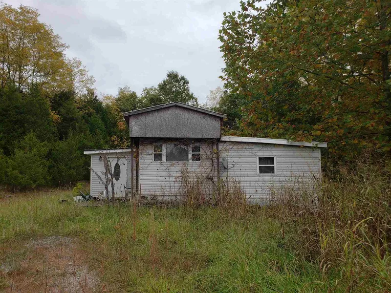 Over 6 acres with scenic views from elevated, level area of wooded, private lot. Country setting close to town with city water. Value is in the land and large, over-sized garage. House is unlivable and is unsafe to enter.