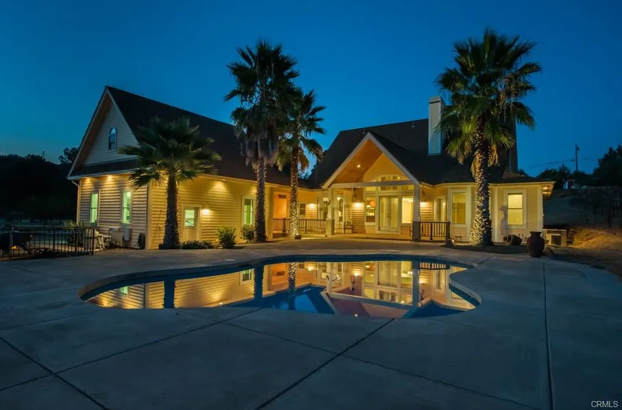 Welcome to "Mediterranean Villa", exquisite Italian style home, and guest house on 6.27 acres. Massive iron gates frame this private 6.27 acre, 3,018 square foot, 4 bedroom, 5 bath, 2-story elegantly appointed estate. The grand foyer opens to the family dining room graced with a 15 light hand made Capodimonte Italian chandelier and imported Italian tiled floors with radiant floor heating. The living room, with its soaring 20 foot vaulted ceilings and cherry wood built in hutch and fireplace mantle, face the wall of Palladian windows with French doors opening to a luxurious in-ground pool. This outdoor entertainment area features an Imported Italian Pizza Oven with granite surfaces and a sink for preparation and a Texas style BBQ pit. The attached 2 car garage has a large walk-in refrigerator/wine cellar, 1/2 bath and a large office above main garage. 40k generator near well house and all electrical utilities are underground. The rich, red, volcanic soils previously hosted approximately 1,000 Kendall Jackson grape vines and currently boasts 53 Imported Registered Italian Tuscan olive trees. The back of the property has building plans for a 2100 SF barn/shop. A variety of fruit trees on the property and a large natural fishing pond where additional water is drawn to water the fully fenced property. The red barn consists of a horse stable, a workshop, a walk-in refrigerator and a furnished 1BD/1 BTH apartment.