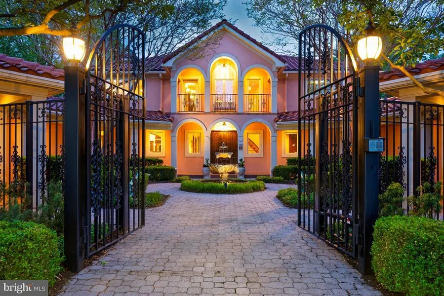 Custom designed and built Spanish style home perfectly situated on 6.28 acres in the established White Flint neighborhood. Backing to trees and a meandering stream, the house rises above a landscaped yard ideal for entertaining. Enjoy relaxing outdoors with the heated pool, patios, deck and screened gazebo. Custom wrought iron front gates offer gracious entry into center courtyard with fountain. No detail was overlooked in this architecturally spectacular home. Features include balconies, high arching windows, mahogany trim, wrought iron detail & railings, marble, wood & ceramic tile flooring, Updated gourmet kitchen has quartz countertops, custom cabinetry and walk-in pantry/laundry room. Two of the five bedrooms have exterior entrances; perfect suites for in-law, au-pair or guest use. Finished lower level offers family room, billiard room, circular library and lots of wine storage. Two...
