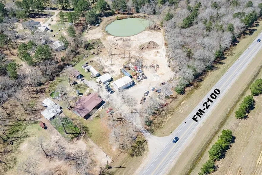 FM 2100 is being widened making this a great commercial location! Grand Parkway is close! Great Location for Country Living & Commercial Business! 6.29 Acres fenced with 2 Street Access!! FM 2100 frontage on both sides of Road!! .03 acre tract on East Side of FM 2100, too!! Multiple Structures: 3 BR 2 bath main house with two living areas, 10 x 70 covered front porch & covered back porch!! 672 sq. ft. 1 BR 1 bath guest house with living area, kitchen & utility room! 2nd Guest house 400 sq. ft. 2 BR 1 bath with living room, kitchen and utility room! 30 x 50 insulated shop with hydraulic lift! 20 x 45 covered RV/Boat Parking! Horse barn with Tack Room, Chicken coop, 26 foot above ground pool with deck! Per Seller the main house is approximately 2,000 sq. ft. The small trailer is approximately 400 sq. ft. and the little guest cottage is 672 sq. ft. Total of everything is approximately 3,072...