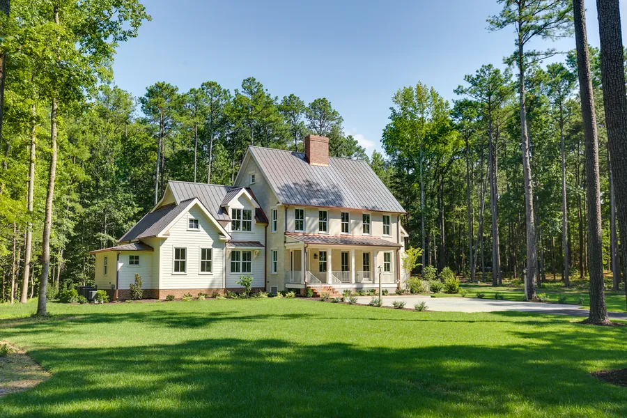 Looking for timeless architecture with the convenience of new construction? This is it! Designed by Robert A. Steele FAIA, this custom home sits on 6+ acres of privacy at the bottom of Lower Tuckahoe. Recognizable by its copper roof and gutters, the house has 4 bedrooms, 5 full & 1 half bathrooms. The kitchen has inset cabinetry, quartz counters, Wolf cooking appliances, 2 Cove dishwashers, a walk-in pantry, and brass hardware that will patina over time. There is a generous first floor primary suite with walk-in closet, large bathroom, private laundry, and its own brick sitting porch. The vaulted living room has a wood burning fireplace while the library has a gas fireplace. Up the main stairs are 3 en suite bedrooms and the homes 2nd laundry room. A huge family room is located up a second set of stairs behind the kitchen. The large Jeld Wen wood windows and doors create wonderful natural light throughout the day. The rear courtyard features a Japanese maple surrounded by bluestone and herringbone brick walkways. Ten foot ceilings, a conditioned crawl, 2 tankless water heaters, 3 car garage, and a private manicured setting round out other features at this wonderful new home.