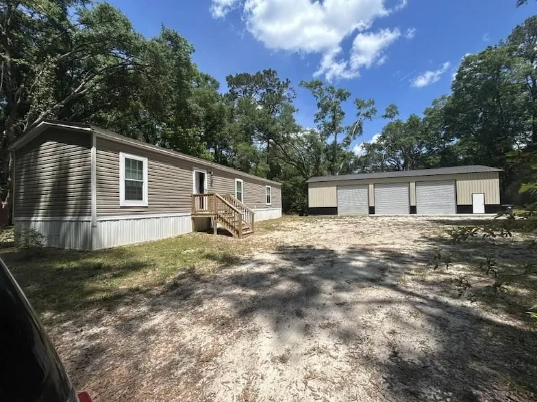 Very unique opportunity to own six acres in NW Tallahassee (just north on Old Bainbridge from HWY 27), a new mobile home and an amazing workshop. So many options for this property. New, split plan mobile home and enough land cleared to build a perfect home with a circular driveway (two entrances - One off Pryor and one off of Old Bainbridge). OR, use the new 1920 square foot (three bay, two doors and four windows) shop to make the perfect home as a barndominium. Land offers fruit trees and just enough privacy from raw wooded areas. The six acres offer a small pond. Please see survey which has changes. Buyer to verify measurements.