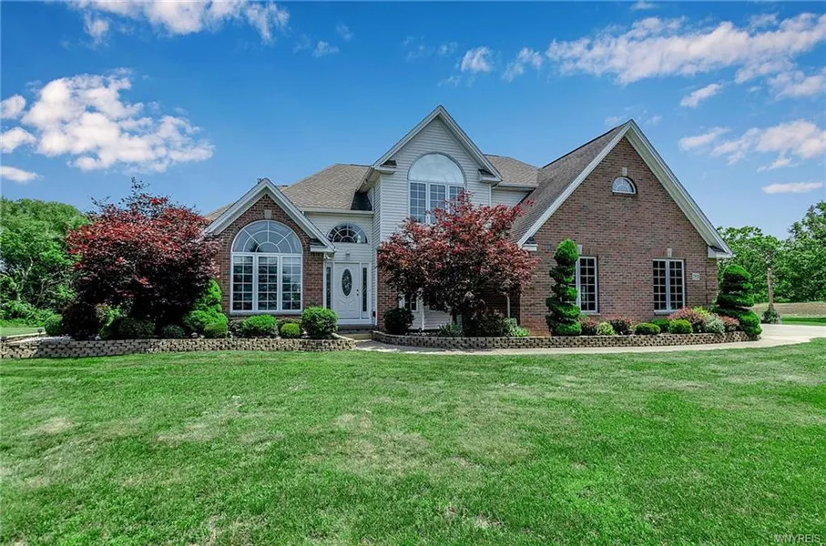 Peace, quiet and room to play-- the country home of your dreams--a gorgeous, 4 bedroom, 2.1 bath home on over 6 acres in Eden with 2-car attached garage! Expansive green views from every window, yet only 5 min. to Hamburg Village & Rt. 219! Enter the 2-story foyer into the welcoming living room with lofty cathedral ceiling & gas fireplace, open to kitchen & bright morning room that walks out to huge deck for relaxing! Primary bedroom suite on 1st floor with full bath, tray ceiling & huge closets. 3 other bright bedrooms beyond spacious loft upstairs. Bonus—1st floor den/home office! Kitchen has Cambria quartz counters & all appliances included. Formal dining room & half bath off entry foyer & kitchen, with 1st floor laundry (machines included) between kitchen & garage. Basement is huge, with 8' ceilings and handy walkup to the garage. Second set of basement stairs off kitchen. Low taxes!...
