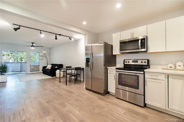 NEW LISTING! Beautifully Renovated and Move In Ready 2 bed 2 bath townhome with 2 parking stalls! Features include an upgraded kitchen with new quartz countertops and new cabinets, new luxury vinyl plank flooring, upgraded bathroom, newer appliances, full sized washer and dryer inside unit, pet friendly and much more! College Gardens is located in Pearl City, just minutes away from shopping, restaurants, parks, & schools. A MUST SEE!