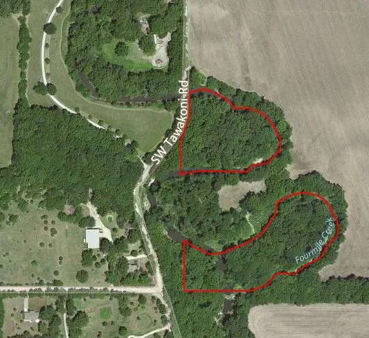 LEGAL DESCRIPTION: All that portion of the Southwest Quarter of Section 1, Township 28 South, Range 3 East of the 6th P.M., lying west of the centerline of Four Mile Creek located in the Southwesterly corner of said Southwest Quarter, Butler County, Kansas.