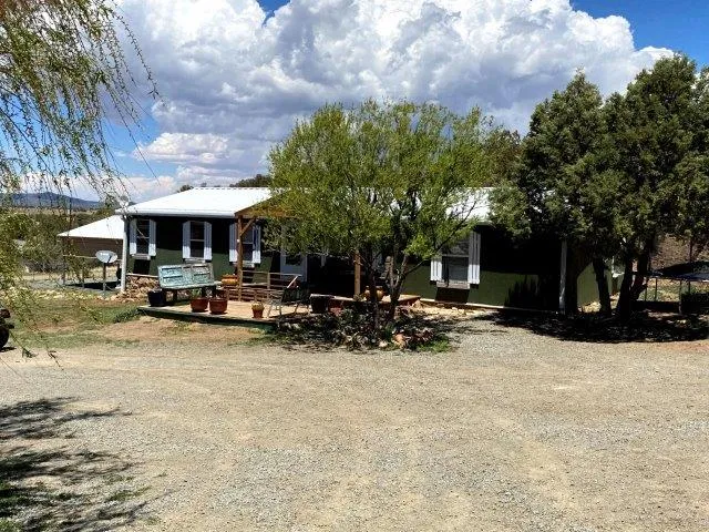 Vast views across groomed land with a remodeled double-wide. Custom kitchen with quartz counter-tops and a hammered copper sink, master bath with claw footed tub, split bedroom floor plan makes this home spacious. 36 x 60 workshop, solid constructed metal building on slab with covered RV storage, 40' x 48' horse barn. 20' x 20' carport, & 10' x 20' storage shed. Freshly graveled circular drive, landscaped, fruit bearing trees, good well, shed and outbuildings are all on approx., 6.44 acre Gentleman's Ranchette.