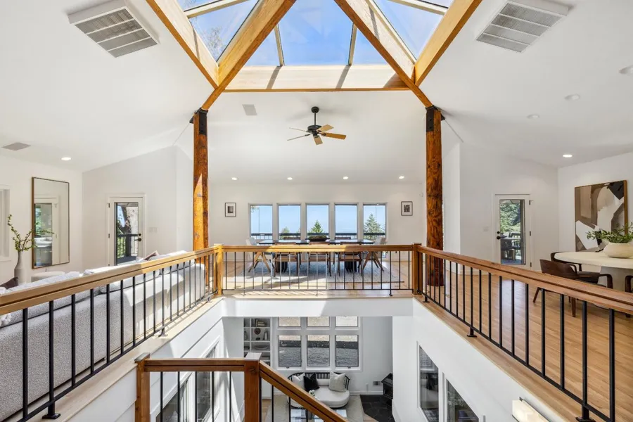 GATED COMMUNITY HOSTS A MODERN ARCHITECTURAL STATEMENT ON 6.44 ACRES! Impeccable showing condition and integrity of its Modern DNA! Custom designed in 1991 by celebrated architect Paul Gilger, it's no wonder this home takes on cinematic qualities: around the same time Gilger was crafting this modern opus, he was masterminding the film studio of George Lucas, the legendary Industrial Light and Magic in San Rafael. * 3 bed/3 ba main house + ADU with bed area, office area, kitchen & full bath * Lower level of main home makes an inspiring Office, Art or Music Zone * Stunning Open Concept * Unobstructed water views * Extensive new landscaping * 2-Story Staircase nearly 30 feet high as work of art * Indoor/Outdoor w/ view dining decks & flat pad to rear * Immersive privacy beyond circular motor court * Detached ADU/Office overlooks new Fountain Courtyard * Architecturally significant bespoke caliber * Central Woodside lifestyle w/ Woodside Elem, just 20-30 min to Sand Hill, Stanford, & Silicon Valley* THIS GATED PRIVATE ROAD HAS TWO GATES: ONE AT CENTRAL WOODSIDE'S BEAR GULCH, AND A SECOND AT SKYLINE, NOT FAR FROM MOUNTAIN HOUSE RESTAURANT AND EASY HWY 92 CONNECTION!