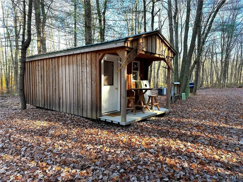 Nestled on 6.45 acres and bordered by county forest, this unique property offers privacy and endless possibilities. Whether you’re looking for a weekend escape, a hunting retreat, or a potential rental investment, this property has it all. The Coho Cabin (10x20) sleeps four and includes cable TV, and a wall mounted heater for cozy nights indoors. Steelhead Cabin (8x16) features tongue-and-groove pine walls, bunk beds, a mini-fridge, cable TV —comfortably rustic and ready to enjoy. The bathhouse (16x8) is equipped with a full bath, shower, laundry facilities, and a basement housing the water pump and an owner’s shower, providing everything needed for extended stays. Expansion awaits with a 14x32 foundation, already supplied with materials, to complete a third cabin. This property also includes six RV sites with electric and water hookups and a 1,000-gallon concrete dump station, making it an RV-friendly haven. Enjoy a day on the local waters of the Salmon River or Lake Ontario. With a short commute to the interstate, the property offers easy access for convenient travels.