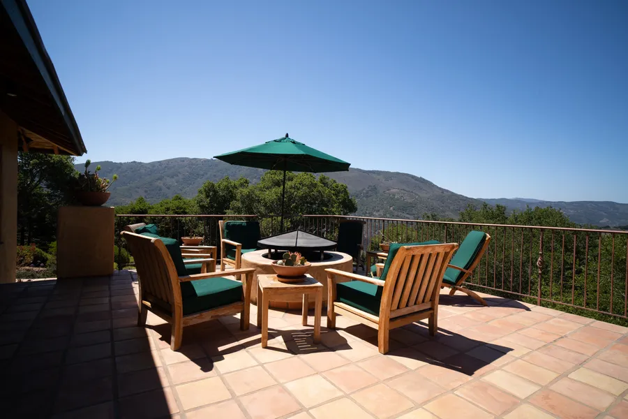 You'll feel you are on top of the world at this magnificent hilltop Mediterranean estate on approx.6 acres, surrounded by mature fruit orchards, vegetable gardens, redwood trees and stunning unobstructed views of Santa Lucia mountains and beyond. Fine craftsmanship defines this contemporary masterpiece with hand-hewn wood beamed ceilings throughout, Saltillo tile, and impeccable attention to fine architectural details. The main house has gorgeous views from every room, including the two master bedroom suites, large open concept kitchen and living room, dining room and second family room, guest rooms and office. There's even a separate 2-bedroom guest house with garage on the property. Great Indoor/outdoor living with multiple patios and verandas, outdoor fireplace, solar power, well, and sunshine nearly year-round. Close to all mid-CV as well as CV Village amenities, hiking in Garland Park and access to Salinas from the Laureles Grade & within the coveted Carmel school district.