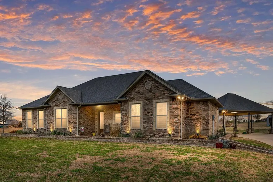 Beautiful custom-built home sits on 6.50 acres and is located on a quiet country road with easy access to I -20. This meticulously maintained property is just minutes to Van and Canton, 35 minutes to Tyler, and 1 hour to Dallas. Good roads all the way to the gate, concrete driveway, and circular turnaround. Home features 2250 square feet of living space, with 4 bedrooms, 2 full baths, and a large covered back porch with great views. Some of the amenities include granite countertops, a walk-in pantry in the kitchen with a working island, gorgeous cabinets, 10' ceilings, 3 stack crown molding, a wood burning stove, stained concrete floors in the living area, mesquite hardwood veneer floors and large closets in the bedrooms as well as marble vanities in each bath. Split bedroom arrangement with open concept. Oversized master with huge walk-in shower and double vanity and large walk-in close...