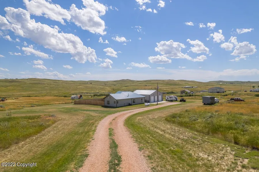 UNDER CONTRACT with a 72hr FRR. Quality, Quality, Quality! Builder Owned & Built to Last! This one-level home has nearly 2,000 SF with 3 bedrooms, 2 bathrooms & a super clean 40x42 shop on 6.60 unzoned acres! Gorgeous heated & stained concrete floors & 9 foot ceilings throughout! Primary suite has private bath & walk-in closet. Solid wood cabinetry in kitchen & baths. Large patio & fenced backyard, curbing with drain between home & shop. 2nd well in fenced garden area. This is one you definitely don't want to miss! Call/Text Jamie 307-680-1239 to take a look!