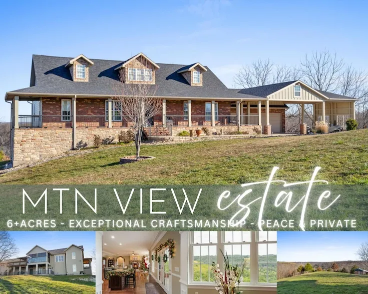 A New Season Rises @ 358 Spring View Pl. Perched high above the rolling Ozark hills & valleys of Mark Twain National Forest near Table Rock Lake, this like-new custom estate welcomes the New Year w/ cinematic sunrise & sunset views that signal fresh beginnings & endless possibility. Set on a private 6+/- acre retreat, this remarkable property offers serenity, space & a setting designed for connection, relaxation & year-round enjoyment w/ spring just around the corner. Crafted w/ intention & extraordinary attention to detail, this rare multi-family unicorn offers three potential owner's suites (one on each level), two gourmet kitchens, & a year-round glassed-in sunroom where natural light pours in & the seasons unfold before you. The main level showcases rich hardwoods, a cozy gas fireplace, a coffered-ceiling dining room & an open-concept chef's kitchen featuring granite counters, custom...