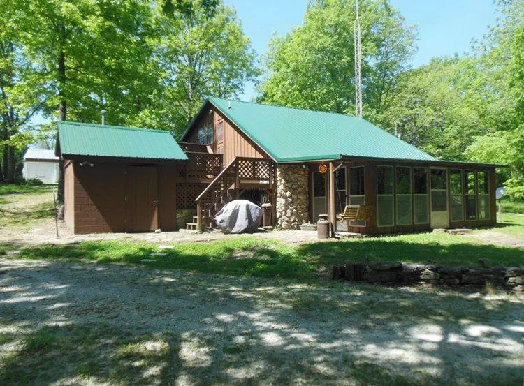 Cozy 3 bedroom earth berm home on 6.6 mostly wooded acres. Open beam ceilings in the great room. Galley style kitchen with nice snack bar/dining area. Master bedroom downstairs. 2 additional bedrooms upstairs. Inviting 10x20 screened porch. Nice deck off the upstairs bedrooms. Central LP heat plus an outdoor wood furnace. 30x40 detached garage/shop with electric, water and 5 garage doors. 14x14 storage building with electric, concrete floor and loft storage. Pretty, park-like setting with the house set back off the blacktop.
