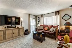 Welcome to the great community of River Oaks! This lovely 3rd floor condo features a welcoming entrance that opens to a spacious living area that accommodates many options for furniture placement and design. The dining area is inviting and will allow you to entertain your friends easily with access to a breakfast bar and great flow into the kitchen. The living area and bedroom both open to a large patio where you can enjoy your morning coffee or a glass of wine after work! The bedroom features a walk-in closet and so much natural light. The bath is updated with a great walk-in shower and there is additional storage in this home. Right around the corner is the laundry room - so convenient! This gated community features lush greenery, mature trees, peaceful creek, massive pool and grill area, as well as covered parking. Conveniently located in the heart of Dallas with easy access...