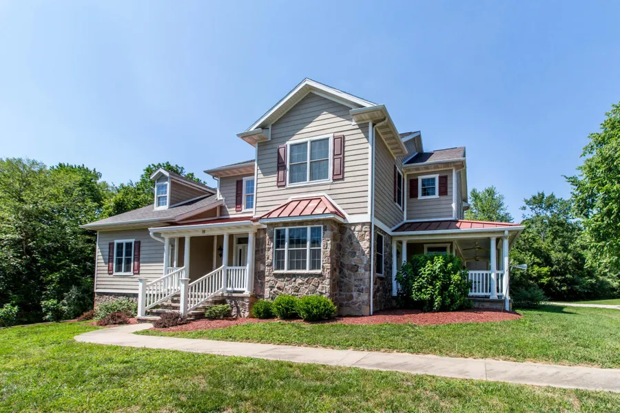 CUSTOM BUILT 2006, 4 BDRM/4 BA 1.5 STORY HOME on FULL, WALKOUT BASEMENT sits on over 6 PEACEFUL ACRES. ~ 2 ACRES w/ INVISIBLE PET FENCE. Gorgeous wood floors! As you step into the thoughtfully designed home, you'll admire the finest quality materials & workmanship throughout. The open, spacious & bright rooms are enhanced by the many energy saving features, the great views of the outdoors, and the extension of living areas to the outdoors. 3 COVERED PORCHES and 2 PATIOS with stamped concrete. 2-CAR 24x24 garage on MAIN and built-in lower level 3rd CAR garage. Chef's Kitchen w/ custom cabinetry, epoxied concrete counters, farmhouse apron sink, newer dishwasher, convection oven, dual wall ovens, gas range top w/ vent, farm sink, breakfast bar, window over sink.