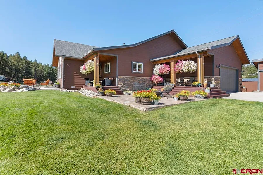 This picture-perfect Bayfield home on 6.6 pastoral acres has been tastefully remodeled and meticulously maintained. Renovated down to the studs in 2016, this single-level 3-bedroom, 2.75-bath home was carefully rebuilt with the highest level of detail and craftsmanship. A custom automatic gate at the entrance to the property provides privacy and security. The property is fully fenced with an additional separate fenced area for pets. The fresh paint and stacked stone on the exterior of the house, impeccable landscaping with built-in patio planters, and a brand-new roof add enormous appeal. Durable Trex decking and several patios maximize the opportunity to sit outside and enjoy the stunning scenery. The interior of the home is elegant and clean with thoughtful conveniences. Everything in the home has been updated, from the paint to the light fixtures to the windows, complete with custom composite no-maintenance shutters. Like its many other high-end features, the home features solid oak flooring throughout as well as solid core interior doors with brushed nickel hardware. The oversized chef's kitchen with pantry is outfitted with custom alder cabinets with extra large pull-out drawers. The granite countertops, travertine backsplash, farm sink, and stainless steel GE appliance package make creating delicious meals a delight. The open concept floorplan in the kitchen and living/dining area is ideal for entertaining. The vaulted tongue and groove ceilings, plentiful windows that let in an abundance of natural light, and a Heatilator pellet stove situated on custom stacked stone add to the comfort and attractiveness of the main living space. The epitome of privacy and relaxation, the master suite includes a flex space that can be used as an office or exercise area. The bath is outfitted with an oversized antique cast iron soaking tub, large walk-in shower, and double vanities. A covered private patio and two large walk-in closets complete the spacious suite. Your guests will feel right at home in one of two large guest rooms that are connected by a Jack and Jill bath. Additional rooms include an additional guest 3/4 bath and laundry room. Plenty of closets offer ample storage space. The attached oversized 24x24 garage is just another desirable feature. The property also includes a spacious 16x36 shop with electric and 220 amp service and a 10x16 storage shed. The property is serviced by an incredible 18 gpm well with an 1800 gallon cistern for additional storage. The front pasture is ready for horses, a large barn, or the shop of your dreams. The HOA and zoning allow for an additional guest house or even a commercial business use. The home is located in the desirable gated and fenced Deer Valley Estates. The subdivision, located between Bayfield and Pagosa Springs, has four private access gates to Sauls Creek, a section of National Forest land with plentiful hiking, biking, horseback, and motorized vehicle trails. Remodeled and updated with care, this beautiful home is ready for its new owners.