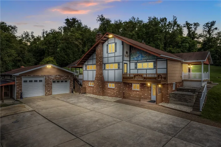 Country living at it's best! Welcome to 2007 Paintertown Rd. located in the Penn Trafford School District. This classic 3 story home sits on 6.7 acres allowing for the seclusion and space you desire. The main level features a spacious living room with decorative fireplace and built ins, dining room, kitchen, primary en suite, a 2nd bedroom, a dedicated office space, and a 2nd full bath. Upstairs you will find the generously sized 3rd bedroom that will provide all the privacy you crave. Downstairs is an expansive finished game room with a wood burning fireplace perfect for entertaining. The lower level also offers a smaller 2nd kitchen, a 3rd full bathroom, and a laundry room. The serene and tranquil outdoor area features a beautiful covered front porch, spacious covered back porch overlooking the inground pool, utility shed, gazebo, and expansive green spaces. So much potential and ready...