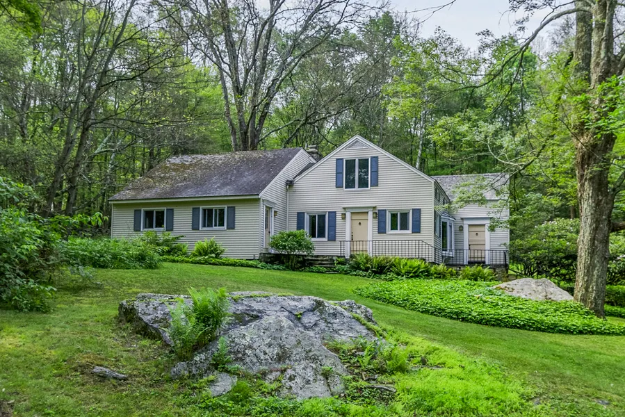 Please note the price improvement for this property! 235 Calkinstown is located just minutes from Sharon town center and situated off the road in a private setting. The house has huge potential; generously sized rooms, a striking stone fireplace, space for entertaining and a great natural setting. In addition to the house there is a separate two car garage with upper level and slate roof and a large Pole Barn also with a second floor and two additional parking spots. There are stone walls, specimen trees and lovely landscaped areas. Land abutting a portion of this property is part of the Northwest Connecticut Land Conservancy creating additional privacy.