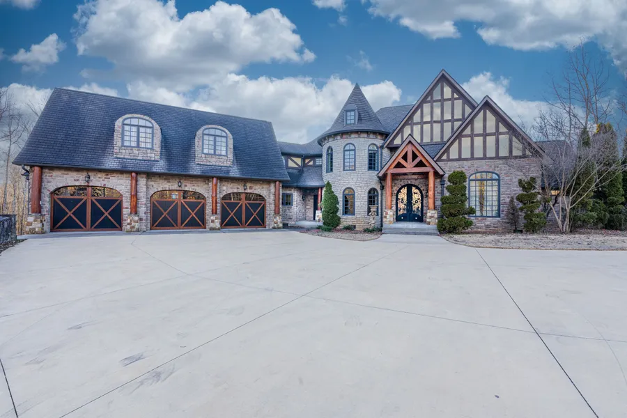 This stunning 5-bedroom, 4-bathroom home on 6.89 acres features exquisite stonework inside and out. The living room boasts a grand stone fireplace, and the chef’s kitchen includes a large island, perfect for entertaining. The breakfast room showcases beautiful stone walls. The spacious primary suite offers a lofted reading area and a luxurious bath. Each bedroom is uniquely designed with specialty ceilings, adding character and charm. A hidden staircase leads to a bonus room, while a back staircase connects to a bedroom, full bath, and a huge playroom. Outdoors, enjoy an inground pool, a pond, a barn, and a children’s playhouse. With 3 garages, this home offers both elegance and practicality for a perfect family retreat. Purchaser to verify sq. ft.