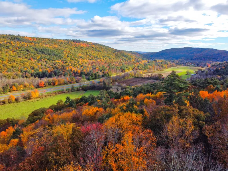 Rising up dramatically from the valley floor, this naturally beautiful lot offers a range of building options depending on your appetite for site work. A relatively flat spot near the road would certainly be the easiest and least costly building location. Building higher up would be more complicated, but unlock spectacular views of the opposing mountains and farmlands below.