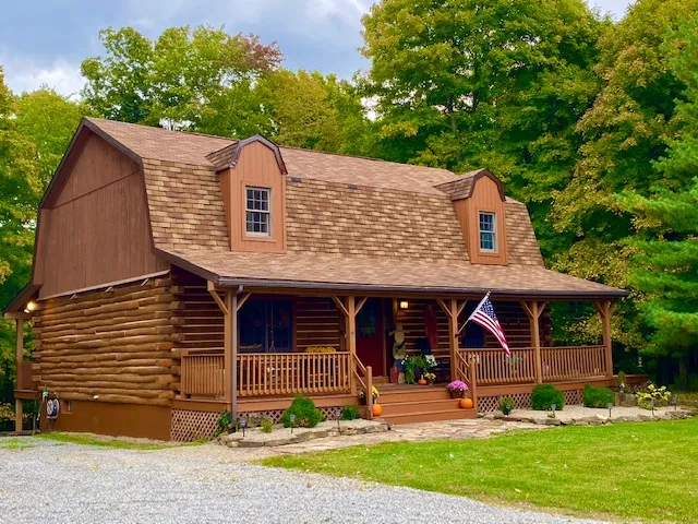PRIVATE & PEACEFUL! Gated driveway leads you back to a beautiful setting. Poplar Log Cabin sits on 6.9 secluded acres, surrounded by forest. Home is immaculate!! 4 bedrooms, 2 bath home features open cathedral ceilings with wood beams, beautiful poplar wood floors, new carpet, laminate and tile flooring. Additional 1120 sq ft of finished living area in the lower level with waterproof laminate flooring throughout. All lights in home are LED, full finished basement, wrap around porch, new furnace and heat pump installed in 2019, all appliances new in 2019. Large pole barn/garage with water and electric and concrete floors. Concrete slab and plumbing installed for outside wood boiler to save on heating bills! A hunters dream home! A MUST SEE! Call for more details.