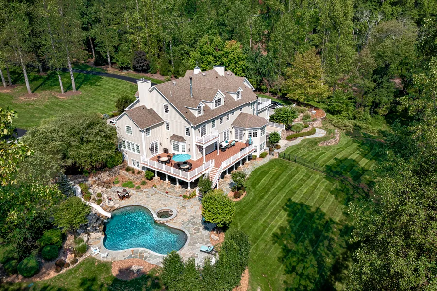 Bernardsville Mountain is home to this stunning, masterfully crafted Bucks County-style residence where sophisticated luxury blends perfectly with the finest architectural detail & materials. Inside, chic elegance defines each of the 3 finished levels with finely milled wainscot & crown molding, tray ceilings, 6 fireplaces, and hardwood floors. High ceilings, large windows, and numerous French doors ensure that the spacious 6-bedroom residence is filled with natural light. The generous chef-caliber kitchen is striking, providing plentiful cabinetry, a large center island, granite and limestone countertops, top-of-the-line appliances, and a breakfast room with a fireplace. The extensive primary suite offers a fireplace, oversized walk-in closet, sitting room with a private balcony, and sumptuous bath. If needed, a 2nd level suite comprising 2 bedrooms, 2 full baths, lounge area, wet bar & private patio can accommodate guests. A beautifully finished daylight walkout lower level with recreation rooms, theatre, wine room, kitchen, and 2 bathrooms opens to the spectacular grounds showcasing a heated in-ground pool with spa, lawns, stone walls, patios, and terraced landscape. Multiple decks & covered patios allow for the ultimate in indoor/outdoor living and entertaining. Shopping, and dining and recreational opportunities abound in the area as well as equestrian facilities & nationally ranked golf courses. Close proximity to the NJ Transit train and major highways makes this the perfect location.