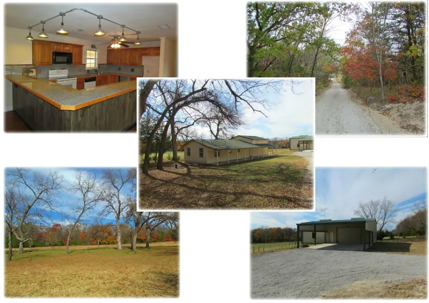 Huge Pecan trees surround this remodeled three bedroom, two bath home tucked on 6.98 very private acres. Home features two living areas, crown molding, hardwood floors, new carpet in bedrooms, fresh paint, new windows and a beautiful kitchen with tile countertops and backsplash. This gorgeous property also includes an insulated shop building with a loft and huge covered area for additional parking, gathering , etc. Paved Ball Road provides access. An amazing property at an affordable price!