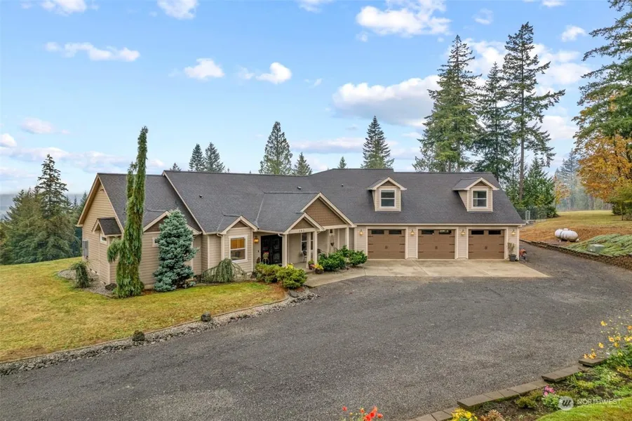 Looking for your forever home? Look no further. This 2009 custom built beauty with over 4000 ft² single level home has 4+bedrooms, 3 1/2 baths, living room, formal dining, large kitchen with granite and eating area, family room, 1100+ sq ftgarage w/bonus and powder rooms above, and the large covered patio great for entertaining. The almost 7 park like acres has been groomed. So close to town but situated in the country with peek a boo view of ChehalisValley. Come experience the tranquility this home has to offer. Great high speed internet. Don't forget to check out the video of the home.