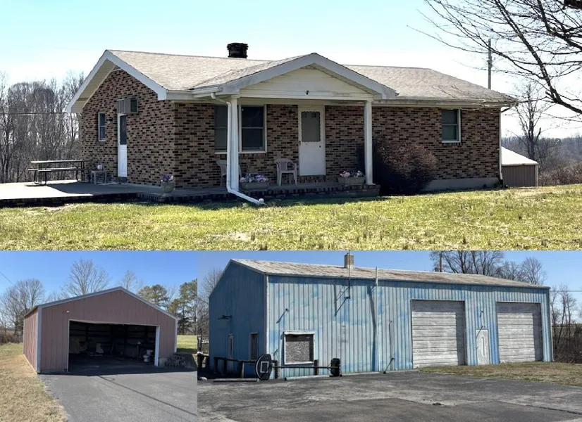 Brick house on 6 acres m/l in the country. The main level of this home features two bedrooms, two bathrooms, a kitchen with ample cabinetry, a dining area and a living room. This home has a full walkout basement and side patio. Property features an abundance of blacktop, two detached metal garages with concrete flooring and electric to both. The larger building is 2,000 + sq. ft. having two overhead doors with high ceilings and includes a large chain hoist plus an upright air compressor, making this building ideal for commercial opportunities such as a mechanic shop or boat storage since it is nestled between Green River Lake and Dale Hollow Lake. The smaller detached garage is located close to house for convenient parking and access to the home. These 6 acres m/l provide a country setting and would accommodate your horses, goats, sheep or any other of your animal adventures. Book your viewing of this gem asap!