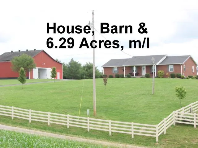 A2571 - 84 Jesse Murrell Rd. , Columbia , KY - This 6 year old brick home has full basement with walk out entrance, nice pebbled patio outback and is situated on 6.29 acres m/l with large 48 ft. x 50 ft. metal barn with partial concrete floor and bathroom. House has 3 bedrooms, 2 baths, (plus shower in basement), open floor plan with kitchen/dining/living combination, central heat and air, county water, and oversized 2 car attached garage.. Full basement offers tall ceilings that could be finished for additional living space plus basement has washer and dryer hookup. Property offers long blacktop drive, vinyl plank fencing, and automatic livestock waterer.
