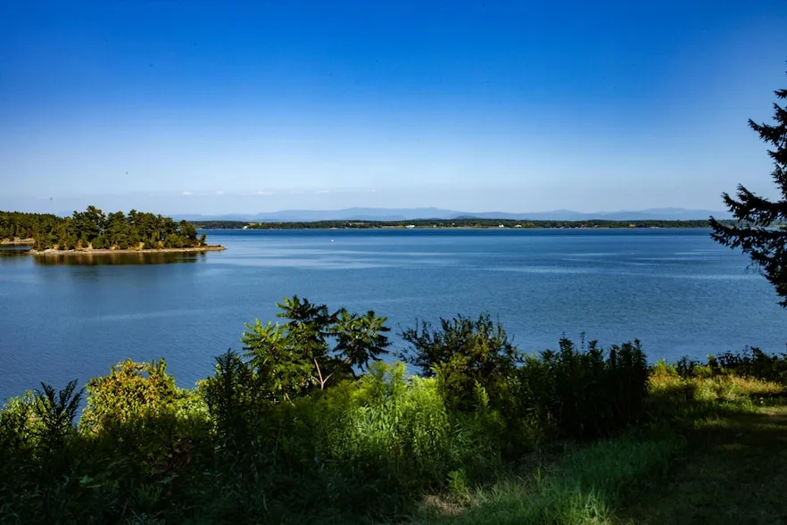 Cedar Bay Lodge on Lake Champlain enjoys privacy on 6 acres with wide sweeping views of the Green Mountains and Cole Island Bay. 375 feet of waterfrontage is easily accessible on a gradually sloped landscaped path. The fully year-round 1920's shingle style ranch house has windows across the front and a great room with vaulted ceilings. The 1960's kitchen will likely be upgraded by the new owners. A master bedroom / and 2 additional bedrooms share 1.5 baths. The long driveway is not shared whatsoever, making the orchard along it especially nice, and of course private. Cole Bay is protected from weather making it very useable for all water activities. Easily accessible from everywhere, this special location is going to be enjoyed by its new owners most certainly.