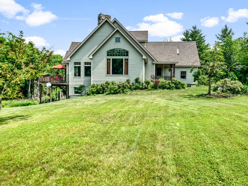 Spectacular Contemporary tucked away on 6+ acres. Boasts amazing trout stocked fishing and swimming pond. Interior features stunning stone double fireplace, dramatic cathedral ceilings, open concept living space. expansive first floor master suite and large deck overlooking the 1.5 acre pond. partway finished day light basement and attached direct entry 2 car garage completes this truly exceptional property.