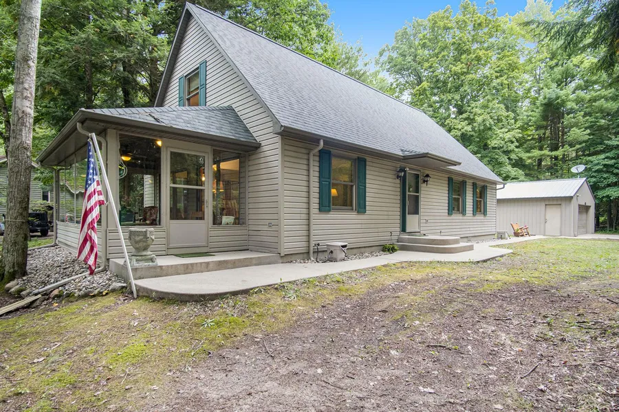 This wonderful 3-bedroom, 2.5-bathroom home on the main branch of the Pere Marquette River could be a charming riverside home or a delightful family getaway. The home also features an office/bonus room and loft room with guest bunks. There are roughly 6 additional acres and a generous 26x32 detached garage. This property has 120 feet of low-bank frontage on the river famous for its salmon and trout fishing. With a cute three-season room to enjoy the sights and sounds of the designated Wild and Scenic River, you might not feel the need for high-speed internet, but it's available for your telecommuting needs. The home is in the heart of the Manistee National Forest, which has thousands of acres of public land. Also includes parcel #053-002-024-047-00. Call Brian Mulherin at 231.690.0872 for more details or to see this great riverfront home.