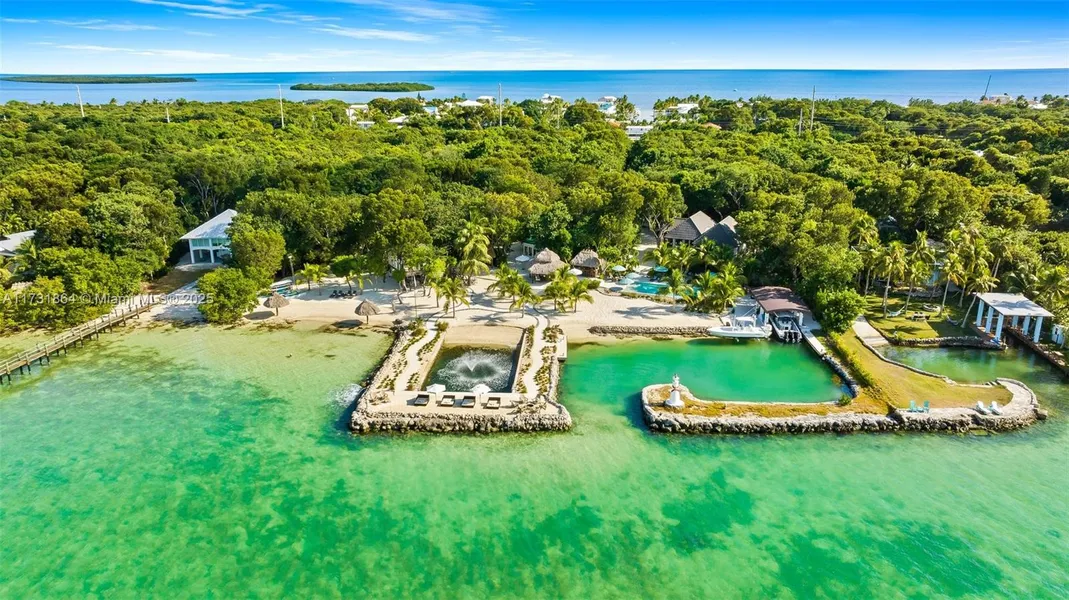 Dreamy, luxurious estate on the BAY OF KEY LARGO just one hour South of Miami. This hidden 6-acre private paradise features over 300 feet of secluded beachfront. The estate includes four bungalows with 7 beds, 6 full baths, 2 half baths, docks, and plans for a 90-ft pier with a 7-ft draft. Enjoy tiki huts, outdoor kitchens, bars, and a spa area, perfect for relaxation or entertaining. Zoned for rentals, it’s a lucrative investment for hosting high-end events. Don’t miss this rare opportunity to own a one-of-a-kind Keys retreat!