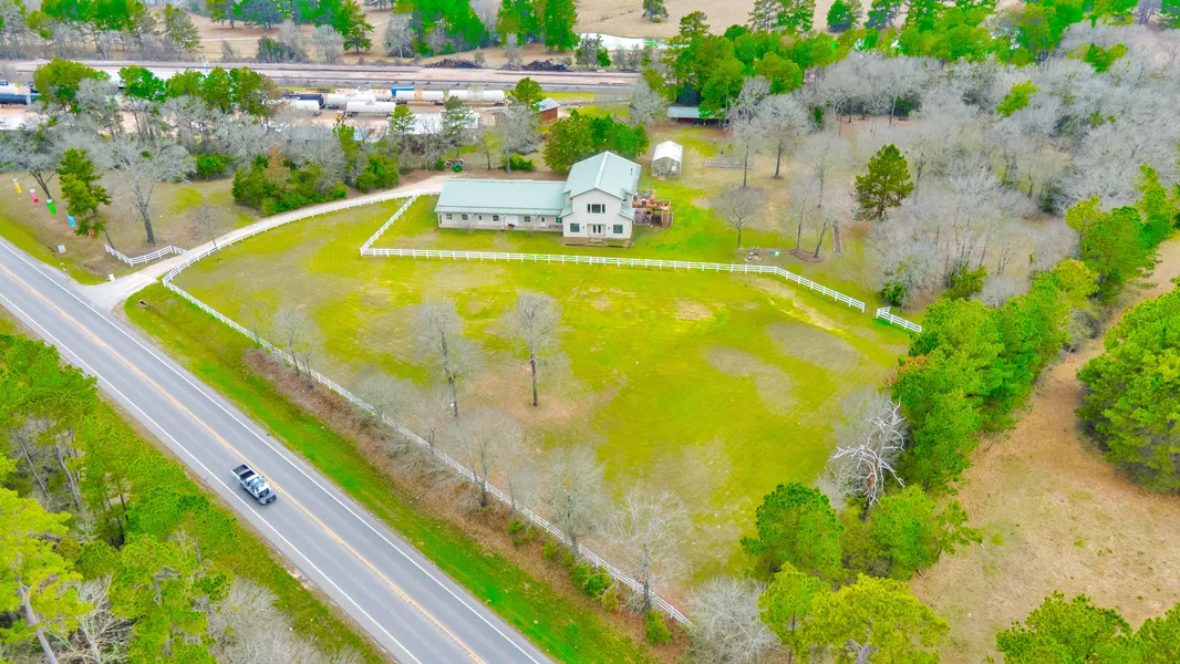 Versatility, practicality, and efficiency all combine to create a masterfully designed multi-functional compound. Repurposed partially for residential living, this property boasts 3 separate workshop spaces two of which are 2,000 SF, while the third measures just under 2,000 SF & currently functions as a studio w/ a half bath + exercise area. Office space can be found on the 1st floor of the barndominium building which features a reception area, common workstation, conference room, and a private office all boasting custom built-ins. On the 2nd floor, you will find a 3/2 custom living quarters w/ a loft (measuring just under 2,800 SF total). The kitchen/dining & bedrooms can easily be converted for additional office space. Behind the 8,000+ SF of multi-functional space lies a greenhouse & an oversized storage barn complete with stall doors and a metal roof. The acreage in the front has been graded for an arena, allowing for potential equestrian use.