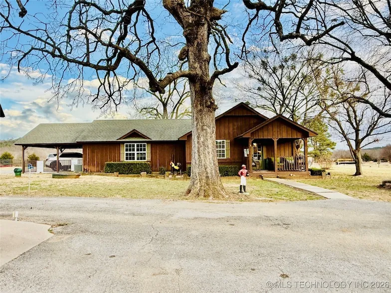 Idyllic homestead on 6 fenced acres with pond, now available now in Hartshorne, OK. The scenery is simply gorgeous with a mountain backdrop and country privacy with easy access to town along paved roads. This home has been completely remodeled, a real show stopper. Step inside to a welcoming foyer and 2 living areas open to the kitchen. The open living plan makes entertaining a delight. Well appointed gourmet kitchen with huge island is both stunning and functional. You will enjoy the master suit with his and her separate bathrooms adding space and ease to hectic everyday living. There is a hall bath between two additional bedrooms, one having a cozy built in bunk nook. Relaxing spaces to sit and enjoy the outdoors and room for your horses or cattle too. Several sheds to cover them from the weather and to store your equipment as well. This gem won't last long. Call for your private showi...